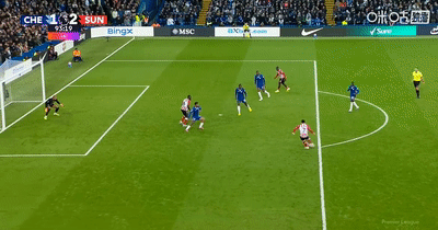 第39分钟,切尔西前场左侧角球机会,又是加纳乔后点包抄不停球直接打门,这次皮球被桑德兰门将罗埃夫斯挡出。